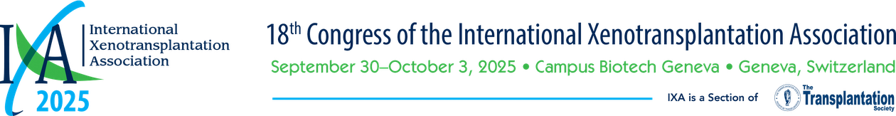 | 18th Congress of the International Xenotransplantation Association c/o The Transplantation Society 740 Notre-Dame Ouest, Suite 1245, Montreal, QC, H3C 3X6, Canada Phone: 1-514-874-1717 ext. 206 | Fax: 1-514-874-1716 | Email: info@ixa2025.org | |