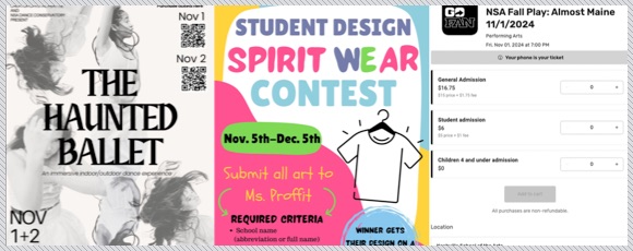 In October, Friends of NSA hosted the Grand Opening of the new Art Gallery - curating greatness & showcasing Visual Art Conservatory talent. We also promoted our new Carpool Resource - a popular FNSA tool - during the 8th Grade Open House. Look for November’s t-shirt student art contest!