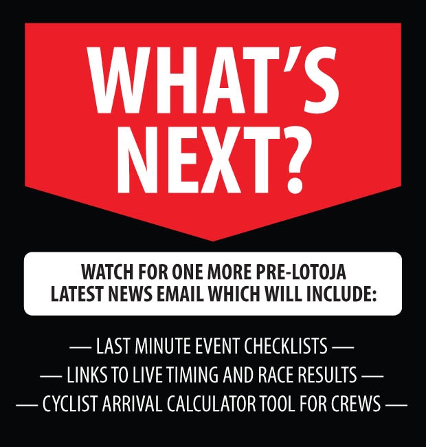 Here’s your LoToJa start time, bib number, and other RIDE category details: