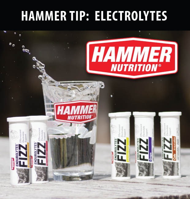 Electrolytes are like the motor oil in your car: they don’t make the engine run, but they’re absolutely necessary to keep everything operating smoothly. Just as you wouldn’t wait for your engine to seize before you top off the oil, don’t wait to cramp up before you replenish electrolytes. Long before you cramp, your output will suffer from mineral depletion.