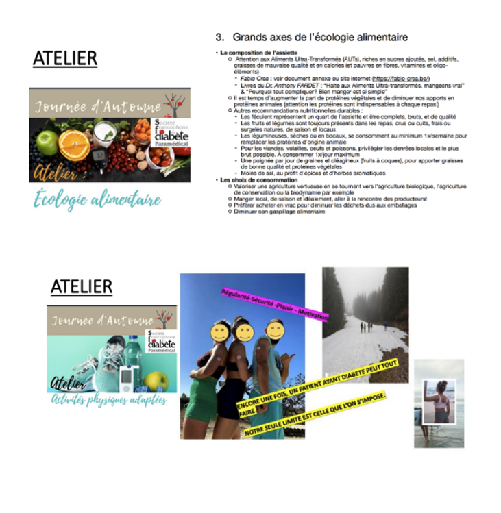 « Le diabète de type 1 est une maladie chronique de plus en plus fréquente chez les enfants et adolescents. Chez les plus jeunes le diabète est souvent mal compris. Ce manque de compréhension pouvant conduire parfois à de la méfiance voire un rejet de l’enfant avec un diabète de type 1 lorsque la maladie n’est pas expliquée avec des outils adaptés à l’enfant lui-même à l’hôpital ou à l’école auprès des camarades de classe. A ce jour, il n’existe peu voire pas d’outils favorisant l’attention des enfants en bas âge et permettant ainsi de transmettre des messages clés autour du diabète. Objectifs : Le projet que j’ai mené a pour objectifs principaux de : - Favoriser l’intégration des enfants âgés de 3,4 ans à 8 ans avec un diabète de type 1 dans les structures d’accueil (écoles, crèches) en améliorant l’attention des enfants durant les séances d’information et sensibilisation au diabète et de ce fait facilitant la transmission des messages clés et la compréhension de la maladie. - Améliorer la gestion quotidienne du diabète de type 1 par l’enfant en développant ses connaissances de la maladie et en l’aidant ainsi à faire des liens entre ce qu’il se passe dans son corps et les gestes et soins qu’il effectue ou auxquels il participe plusieurs fois par jour Méthodes : A la suite d’une recherche de littérature et recherches sur l’attention des enfants, j’ai créé un outil éducatif et visuel en m’inspirant des Kamishibais (petit théâtre japonais) permettant d’expliquer le diabète aux enfants âgés de 3,4 ans à 8 ans. Cet outil se présente sous la forme d’une grande mallette en bois, format A3 contenant plusieurs histoires autour du diabète. J’ai testé l’outil lors de mes séances d’information et sensibilisation au diabète dans les écoles. Au total 25 classes de 18 à 20 élèves âgés de 4 à 8 ans. J’ai fait évaluer les séances et l’outil par les infirmières scolaires et/ou enseignants présents lors de la séance. Par la suite j’ai également fait évaluer l’attention des élèves au moyen d’une grille d’évaluation. Résultats : Les retours ont été très positifs. L’outil a de nombreuses fois été décrit comme « outil original et efficace ». Une large majorité des élèves se sont montrés attentifs et intéressés. La plupart d’entre eux ont réussi à verbaliser en fin de séance les messages clés à retenir. Conclusion : L’outil créé favorise l’attention des plus jeunes lors des séances d’information et sensibilisation au diabète dans les écoles, en créant toute une atmosphère propice à l’écoute et aux échanges. Ces éléments contribuent à une transmission efficace des messages clés autour du thème « diabète et école » et de ce fait une meilleure compréhension de la maladie et intégration des enfants avec un diabète de type 1 dans les écoles. »