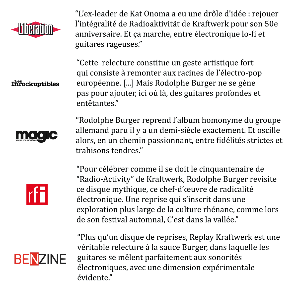 Rendez-vous au bureau-boutique du label Dernière Bande jeudi 11 décembre à partir de 18h pour une signature avec Rodolphe Burger et l’écoute d’enregistrements inédits : 45 rue des Trois Bornes, 75011 Paris.