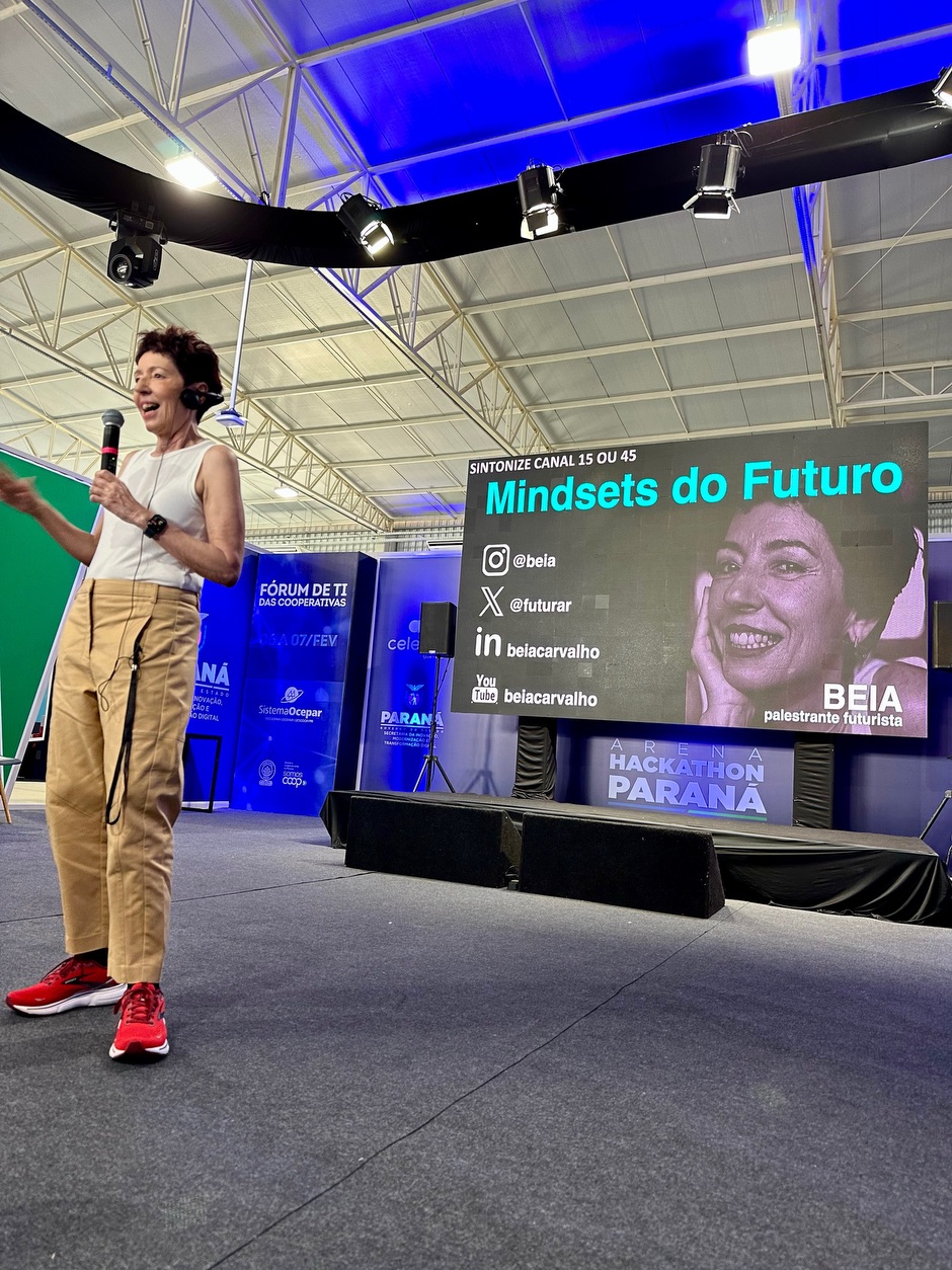 Nesse momento de suspense que colocou o público a pensar em odisseias no espaço, Beia Carvalho elencou os outros mindsets do futuro. [perguntas, mindset da Inteligência Artificial (IA), da longevidade, o mindset do letramento]; e, finalmente, o mindset de aprender, porque “no século XXI você vai aprender até ao último dia da sua vida”.